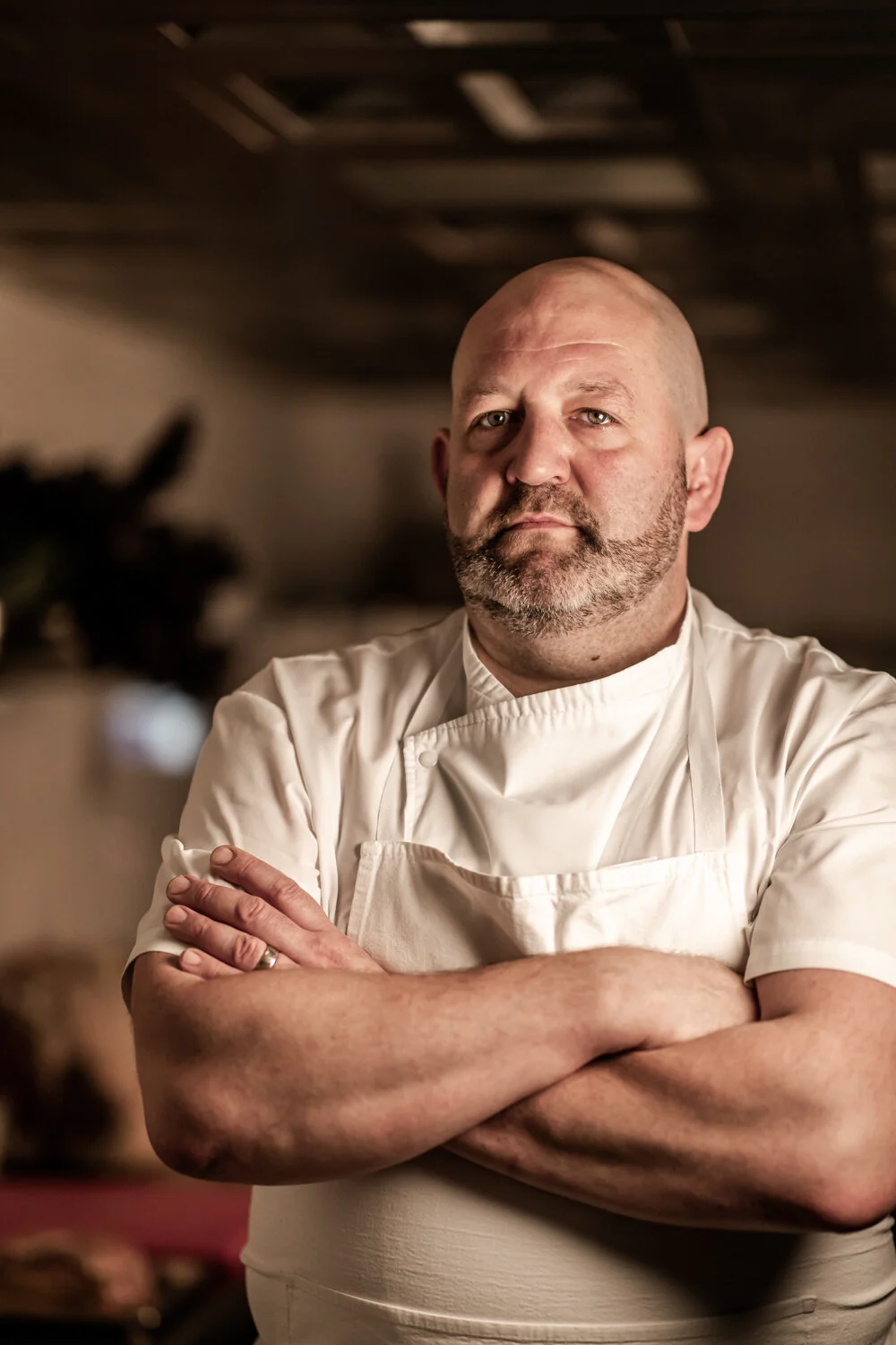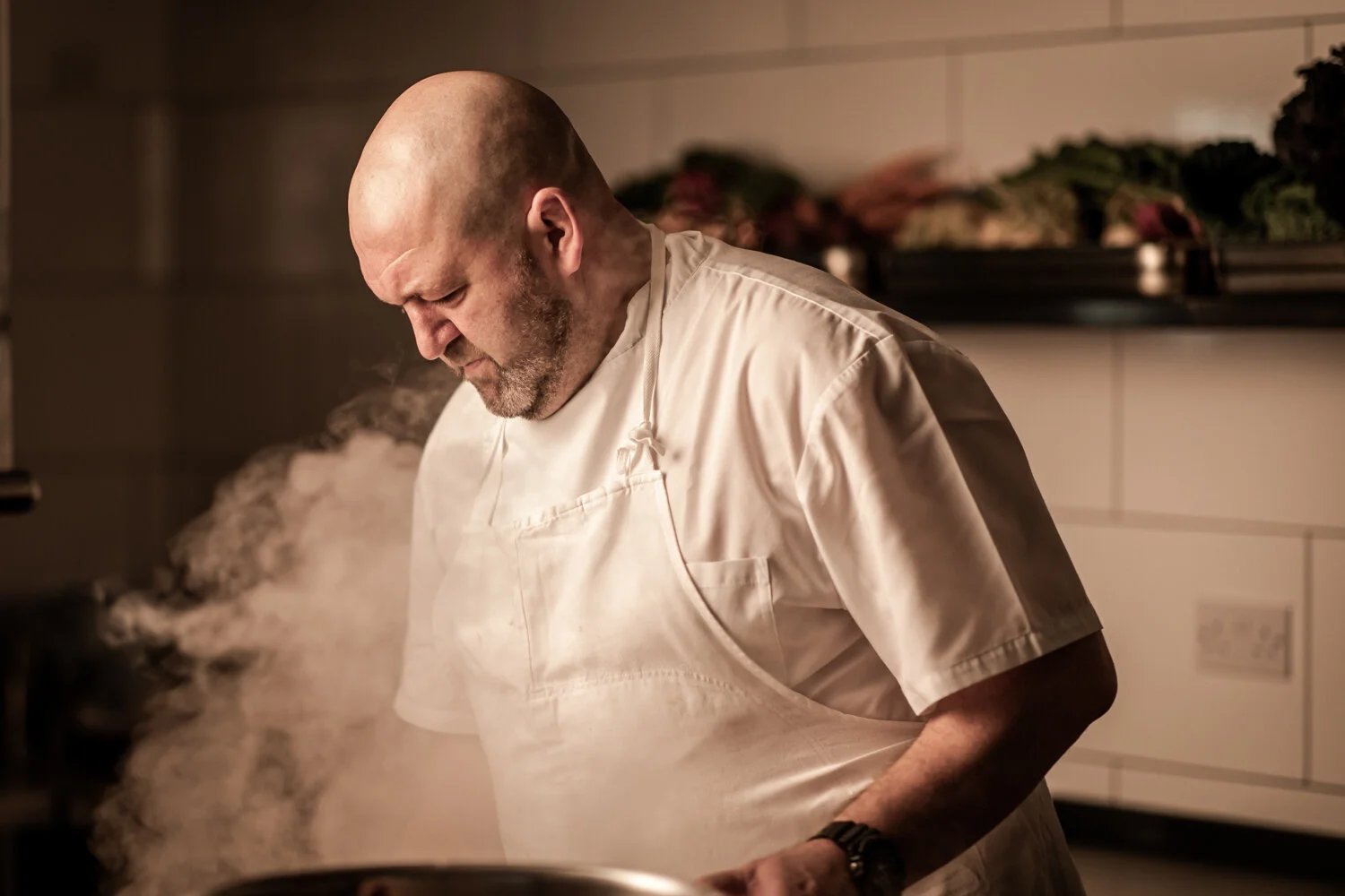 These two images are of local chef Peter Dale. These were part of a live shoot and portraiture training day with photographer and Canon Ambassador Clive Booth. This whole shoot was inspirational from the setting of the scene the previous day, the supply of goods from the local fruit & veg shop and butchers; the extensive preparation undertaken by Pete and his team to stage the kitchen ready for the shoot; then the light and atmosphere was completely crafted by Clive to create the look and feel he was after. The level of detail and background preparation to create these images needs a blog post in its own right. The meticulous planning and attention to detail is key to getting images for your business you will want to share.